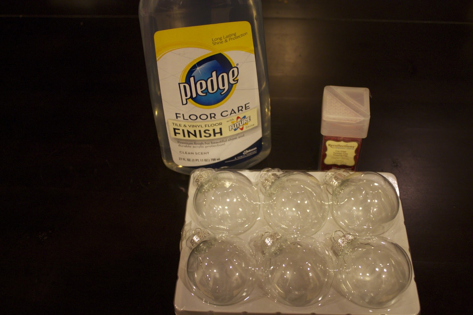 - Cover the opening with plastic wrap and swirl the Pledge to coat the inside of the ornament